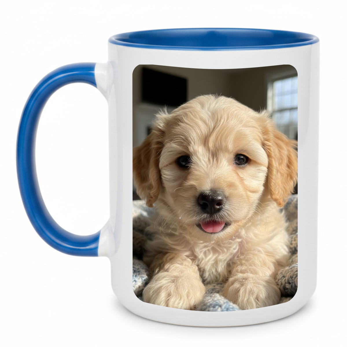 Transforme momentos especiais em lembranças inesquecíveis com a caneca personalizada com alça e interior azul médio. Produzida em porcelana AAA importada e estampada com impressão sublimática de qualidade fotográfica, ela é a escolha perfeita para presentear amigos, familiares, clientes ou aquela pessoa especial.