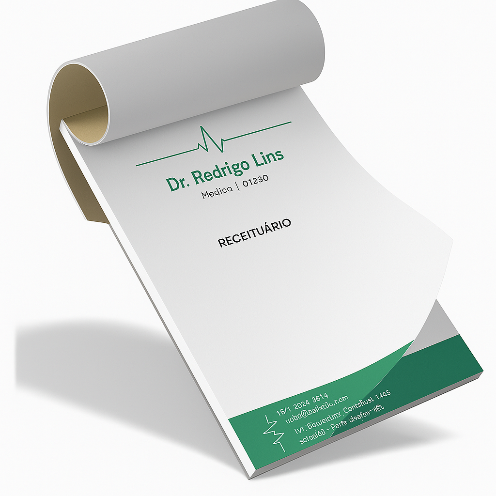 Cada bloco é confeccionado com acabamento de primeira, garantindo resistência e praticidade no manuseio diário. O layout é personalizado com seu logotipo, dados profissionais e identidade visual, reforçando a confiança no seu atendimento.